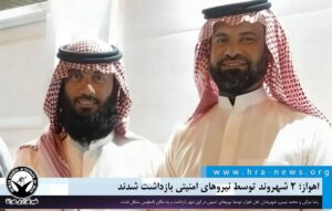 خبرگزاری هرانا – رضا بترانی و محمد نیسی، شهروندان اهل اهواز، امروز توسط نیروهای امنیتی در این شهر بازداشت و به مکان نامعلومی منتقل شدند.