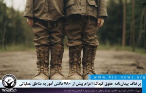 خبرگزاری هرانا – برخلاف تعهدات بینالمللی ایران تحت عنوان الحاق به پیماننامه حقوق کودک و تعهدات مربوط به عدم بهکارگیری کودکان در امور نظامی، بیش از ۷۸۰ دانش آموز از یزد، شاهرود، چهارباغ و دزفول به اردوی موسوم به «راهیان نور» اعزام شدند.