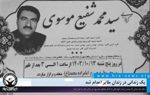 هویت این زندانی که سحرگاه امروز چهارشنبه ۱۲ دی ماه به چوبه دار آویخته شده، محمد شفیع موسوی توسط هرانا احراز شده است.