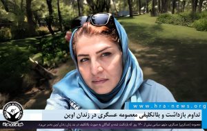 خبرگزاری هرانا – معصومه (عسکری) عسگری، متهم سیاسی بیش از ۱۶۰ روز که بازداشت شده و کماکان به صورت بلاتکلیف در بند زنان زندان اوین بهسر میبرد.