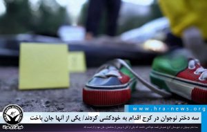 خبرگزاری هرانا – شب گذشته، سه دختر نوجوان در شهرستان کرج همزمان قصد خودکشی داشتند که یکی از آنان با پریدن از ساختمان، جان خود را از دست داد.