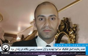 خبرگزاری هرانا – مسیب رئیسی یگانه، زندانی سیاسی، بدون رعایت اصل تفکیک جرایم و با بیتوجهی مسئولین به حفظ امنیت و سلامت وی، دوران محکومیت خود را در زندان یزد سپری میکند.