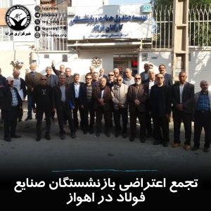 اتحادیه آزاد کارگران ایران نیز از تجمع گروه دیگری از آنها در مقابل ساختمان صندوق بازنشستگی صنایع فولاد در اهواز خبر داد.