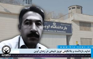 خبرگزاری هرانا – نوروز ذبیحی، شهروند بازنشسته ساکن تهران ۱۰ روز است که توسط نیروهای امنیتی بازداشت شده و پس از برگزاری جلسه بازپرسی، همچنان به صورت بلاتکلیف در زندان اوین بهسر میبرد.