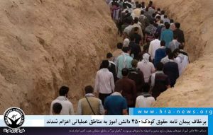 خبرگزاری هرانا – برخلاف تعهدات بین المللی ایران تحت عنوان الحاق به پیمان نامه حقوق کودک و بخش عدم به کارگیری کودکان در امور نظامی، ۴۵۰ دانش آموز از شهرهای بهبهان، سوادکوه، زارچ، زیدون و اشتهارد به اردوهای موسوم به “راهیان نور” در مناطق عملیاتی جنوب و غرب کشور اعزام شدند.
