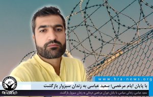خبرگزاری هرانا – روز جاری، سعید عباسی، زندانی سیاسی، با پایان دوران مرخصی درمانی به زندان سبزوار بازگشت.