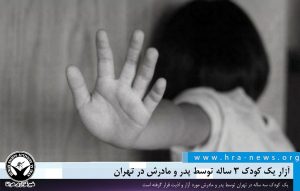 به گزارش خبرگزاری هرانا به نقل از رکنا، یک کودک سه ساله در تهران توسط والدینش مورد آزار و اذیت قرار گرفته است.