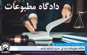 خبرگزاری هرانا – سخنگوی هیأت منصفه دادگاههای سیاسی و مطبوعاتی اعلام کرد که در جلسه امروز دادگاه مطبوعات، مدیرمسئول و صاحب امتیاز سایت خبری اصلاحاتنیوز، مدیرعاملان سابق ایرنا و یکی از نویسندگان این خبرگزاری مجرم شناخته شدند.