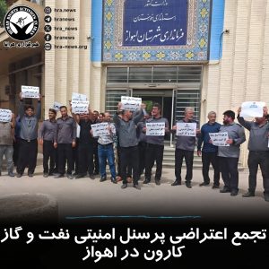 به گزارش هرانا، روز چهارشنبه ۱۰ اردیبهشت ماه، گروهی از پرسنل امنیتی نفت و گاز کارون در اهواز در اعتراض به عدم رسیدگی به مطالباتشان در مقابل ساختمان استانداری و فرمانداری این شهر، دست به تجمع زدند.