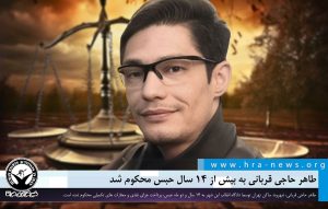 خبرگزاری هرانا – طاهر حاجی قربانی، شهروند ساکن تهران توسط شعبه ۲۶ دادگاه انقلاب این شهر به ۱۴ سال و دو ماه حبس، پرداخت جزای نقدی و مجازات های تکمیلی محکوم شده است.