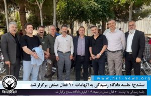 خبرگزاری هرانا – امروز دوشنبه ۱۹ خرداد، جلسه رسیدگی به اتهامات محمدرضا مرادی، مختار اسدی، سیدغیاث نعمتی، رضا طهماسبی، مجید کریمی، صلاح حاجیمیرزایی، شهریار نادری، آرام ابراهیمی، صادق کنعانی و بهزاد قوامی در شعبە ۱۰۹ کیفری دادگاە سنندج برگزار شد.