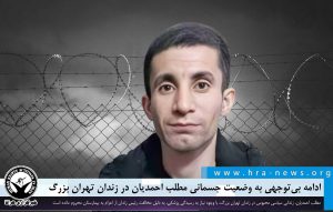 به گزارش خبرگزاری هرانا، ارگان خبری مجموعه فعالان حقوق بشر در ایران، مطلب احمدیان، زندانی سیاسی با حال نامناسب جسمانی در حال تحمل دوران محکومیت خود در زندان تهران بزرگ است.