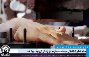 به گزارش خبرگزاری هرانا، ارگان خبری مجموعه فعالان حقوق بشر در ایران، حکم قطع انگشتان دست راست سه زندانی به اجرا درآمد.