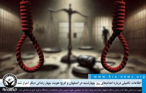 به گزارش خبرگزاری هرانا، ارگان خبری مجموعه فعالان حقوق بشر در ایران، سحرگاه چهارشنبه ۱۵ مردادماه ۱۴۰۴، احکام اعدام پنج زندانی در زندان مرکزی اصفهان و دو زندانی در ندامتگاه مرکزی کرج به اجرا درآمد.