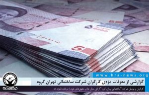 خبرگزاری هرانا – کارگران و پرسنل شرکت “ساختمانی تهران گروه” از ابتدای سال جاری حقوق‌ دریافت نکرده‌اند.