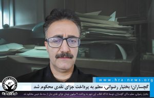 خبرگزاری هرانا – بختیار رضوانی، معلم ساکن گچساران، توسط دادگاه انقلاب این شهر به پرداخت ۹ میلیون تومان جزای نقدی بدل از سه ماه حبس محکوم شد.