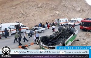 خبرگزاری هرانا – امروز یکشنبه ۱۹ مردادماه، واژگونی مینیبوس حامل دانش آموزان در شهرستان پارس آباد، به مرگ یک دانش آموز و مصدومیت ۲۶ تن دیگر انجامید.