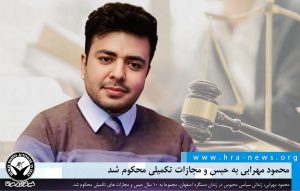 به گزارش خبرگزاری هرانا، ارگان خبری مجموعه فعالان حقوق بشر در ایران، علیه محمود مهرابی حکم حبس و مجازات های تکمیلی صادر شد.