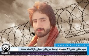 خبرگزاری هرانا – روز چهارشنبه ۲۲ مردادماه، عبدالواحد پیردادی ریگی، یونس دلاوری و رحمتالله آرامون شهروندان اهل شهرستان تفتان توسط ماموران اداره اطلاعات بازداشت و به مکان نامعلومی منتقل شدند.