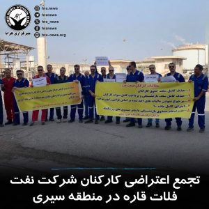 به گزارش خبرگزاری هرانا، ارگان خبری مجموعه فعالان حقوق بشر در ایران، امروز جمعه ۷ شهریور ۱۴۰۴، گروهی از کارکنان شرکت نفت فلات قاره در منطقه سیری، در محل کار خود تجمع اعتراضی برگزار کردند.