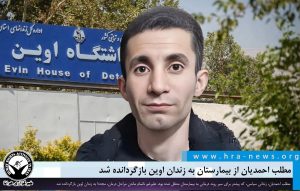 به گزارش خبرگزاری هرانا، ارگان خبری مجموعه فعالان حقوق بشر در ایران، مطلب احمدیان، زندانی سیاسی از بیمارستان به زندان اوین بازگردانده شد.