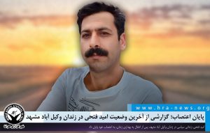 خانه  > slide, زندانیان  >  پایان اعتصاب؛ گزارشی از آخرین وضعیت امید فتحی در زندان وکیل آباد مشهد