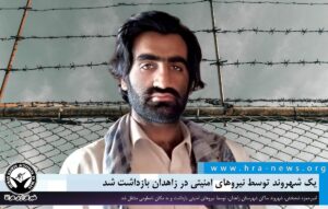 خبرگزاری هرانا – روز جاری، امیرحمزه شهبخش، شهروند ساکن شهرستان زاهدان، توسط نیروهای امنیتی بازداشت و به مکان نامعلومی منتقل شد.