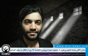 یک منبع مطلع نزدیک به خانواده این زندانی سنی مذهب ضمن تایید این خبر به هرانا گفت: “حمزه درویش همچنان به صورت تنبیهی در سلول انفرادی نگهداری می‌شود. به خانواده این زندانی اعلام شده که وی در اختیار حفاظت زندان قرار دارد، اما مسئولان این واحد، تاکنون پاسخ روشنی در خصوص وضعیت آقای درویش ارائه نکرده‌اند. بی خبری از وضعیت این زندانی، به افزایش نگرانی‌های خانواده و بستگانش انجامیده است.”