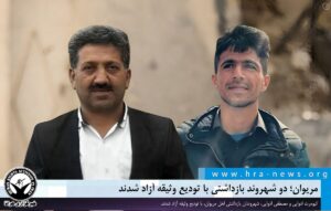 خبرگزاری هرانا – امروز پنجشنبه ۱ آبان ماه، کیومرث ادوایی و مصطفی ادوایی، شهروندان بازداشتی اهل مریوان، با تودیع وثیقه آزاد شدند.