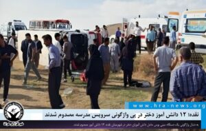 خبرگزاری هرانا – مسئول اورژانس و فوریت‌های پزشکی ۱۱۵ شهرستان نقده از واژگونی یک دستگاه مینی‌بوس حامل دانش آموزان دختر در این شهرستان خبر داد. در پی وقوع این حادثه، ۱۲ دانش آموز به همراه راننده مینی بوس مصدوم و جهت سیر مراحل درمان به بیمارستان امام خمینی نقده منتقل شدند.