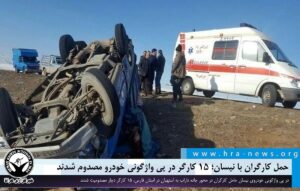 خبرگزاری هرانا – در پی واژگونی خودروی نیسان حامل کارگران در محور جاده داراب به استهبان در استان فارس، ۱۵ کارگر دچار مصدومیت شدند.