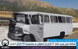 خبرگزاری هرانا – روز گذشته، بر اثر حادثه برخورد مینیبوس حامل کارگران شرکت نفت با یک دستگاه خودروی سواری در نجفآباد اصفهان، ۱۳ کارگر مصدوم شدند.