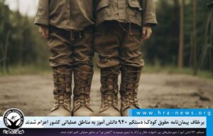 خبرگزاری هرانا – برخلاف تعهدات بینالمللی ایران تحت عنوان الحاق به پیماننامه حقوق کودک و تعهدات مربوط به عدم بهکارگیری کودکان در امور نظامی، دستکم ۹۴۰ دانشآموز از شهرستانهای ری، اشتهارد، دلفان و اراک به اردوی موسوم به «راهیان نور» اعزام شدند. همچنین از ابتدای سال تحصیلی تاکنون یکهزار و ۶۰۰ دانشآموز دختر نیز از اراک به مناطق عملیاتی اعزام شدند.