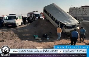 سمنان؛ ۱۱ دانش آموز در پی انحراف و سقوط سرویس مدرسه مصدوم شدند