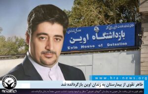 به گزارش خبرگزاری هرانا، ارگان خبری مجموعه فعالان حقوق بشر در ایران، طاهر نقوی به زندان اوین بازگردانده شد.