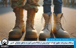 خبرگزاری هرانا – برخلاف تعهدات بین‌المللی ایران تحت عنوان الحاق به پیمان‌نامه حقوق کودک و تعهدات مربوط به عدم به‌کارگیری کودکان در امور نظامی، بیش از ۹۹۵ دانش آموز از شهرستان‌های صومعه‌سرا، بهبهان، دهدشت، چرام، آوج، کرج، دامغان و بهار به اردوی موسوم به «راهیان نور» اعزام شدند.