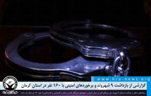خبرگزاری هرانا – در پی حملات نظامی آمریکا و اسرائیل به ایران، دستکم ۹ شهروند در استان کرمان و شهرهای خرمآباد، داراب و شهر بابک بازداشت شدند. همچنین اداره اطلاعات استان کرمان اعلام کرد که از زمان شروع جنگ، ۱۶۰ نفر در این استان به دلیل آنچه «فعالیت علیه امنیت کشور» عنوان شده، شناسایی و مورد «اقدام قانونی» قرار گرفتهاند.
