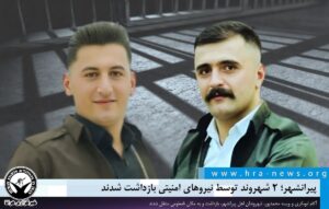خبرگزاری هرانا – امروز، آکام ابوبکری و ویسه محمدپور، شهروندان ساکن پیرانشهر، توسط نیروهای امنیتی بازداشت و به مکان نامعلومی منتقل شدند.