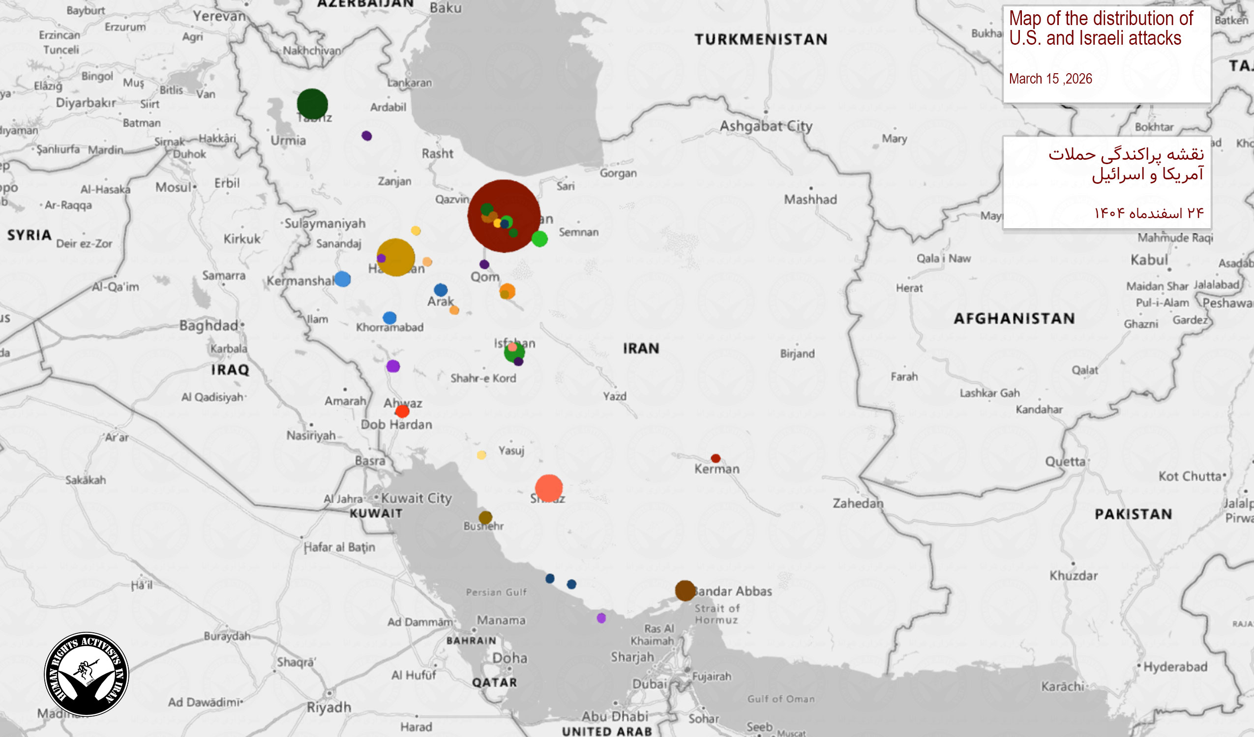دادههای تجمیعی از آغاز درگیری ۹ اسفندماه تا زمان انتشار این گزارش – بر اساس رویدادهای ثبتشده و با در نظر گرفتن مقادیر حداقلی برای ارقامی که با «بیش از» مشخص شدهاند: