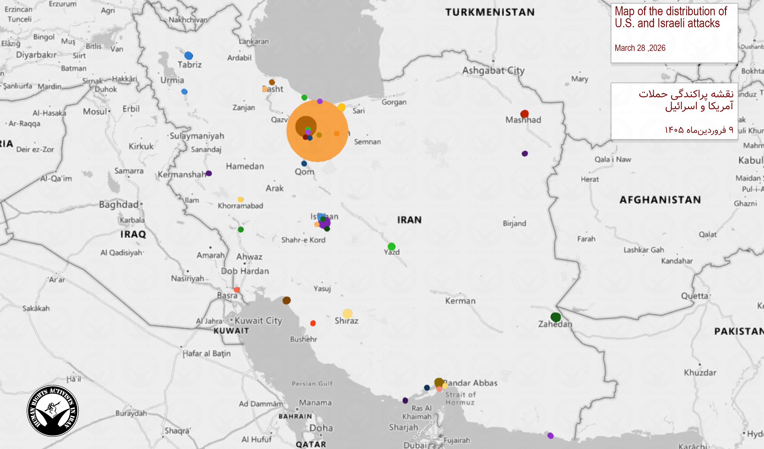 داده‌های تجمیعی از آغاز درگیری ۹ اسفندماه تا زمان انتشار این گزارش – بر اساس رویدادهای ثبت‌شده و با در نظر گرفتن مقادیر حداقلی برای ارقامی که با «بیش از» مشخص شده‌اند: