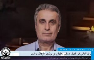 خبرگزاری هرانا – روز گذشته، رضا امانی فر، فعال صنفی معلمان بوشهر توسط نیروهای امنیتی در این شهر بازداشت شد.