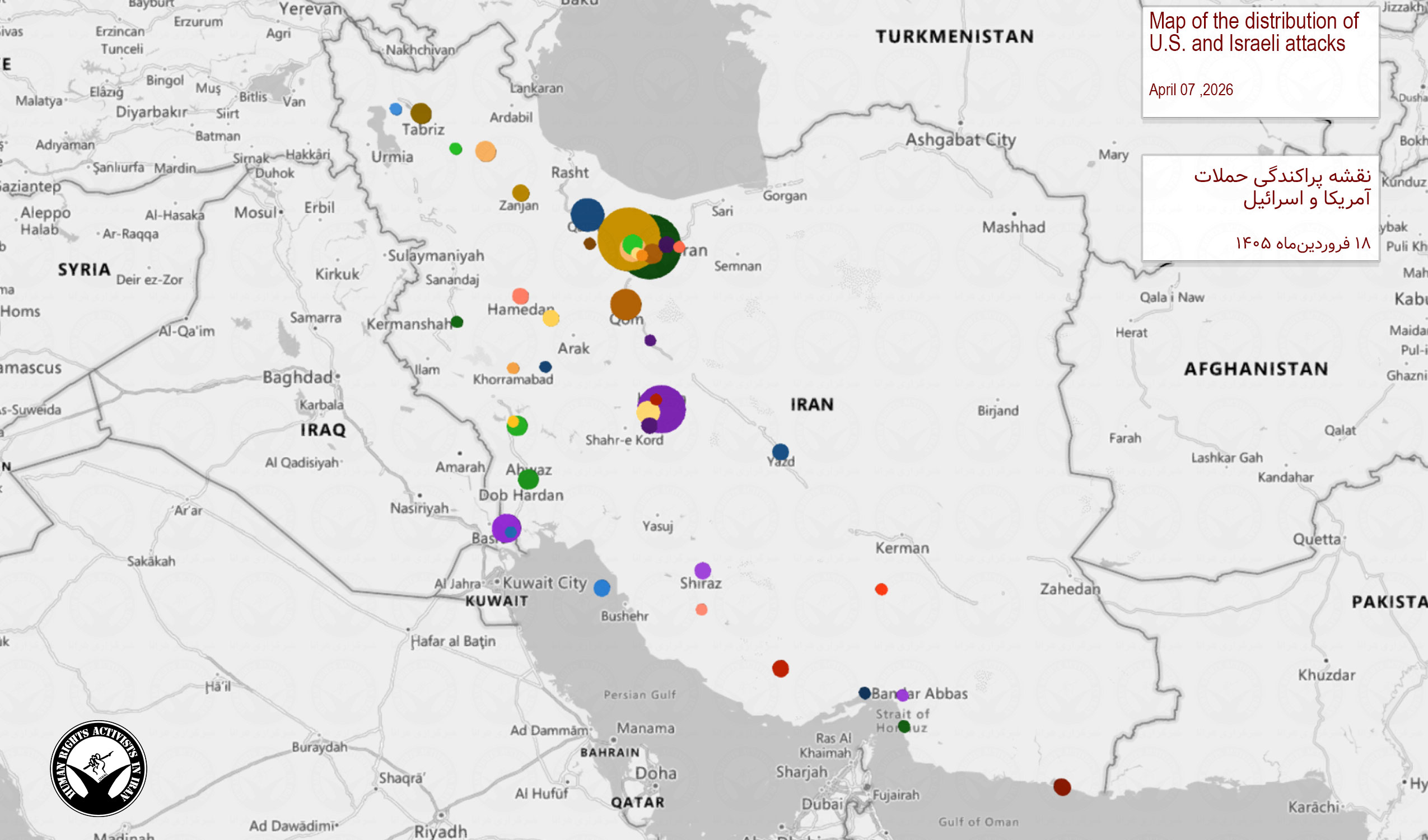 بر اساس اطلاعات ثبت و راستیآزماییشده توسط خبرگزاری هرانا، از نخستین دقایق تا پایان روز ۱۸ فروردین ۱۴۰۵، دستکم ۳۶ غیرنظامی کشته و ۴۸ غیرنظامی دیگر مجروح شده اند.