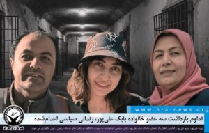 خبرگزاری هرانا – روزبه علیپور، مریم علیپور و امالبنین دهقان، از اعضای خانواده بابک علیپور، زندانی سیاسی اعدام شده، ۷۶ روز است که بازداشت شدند و به صورت بلاتکلیف در زندان های قرچک ورامین و اوین نگهداری میشوند.