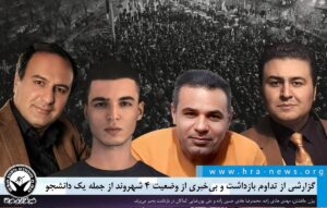 به گزارش خبرگزاری هرانا، ارگان خبری مجموعه فعالان حقوق بشر در ایران، بیژن جانفشان، مهدی هادی زاده، محمدرضا هادی حسین آبادی و علی پوررضایی کماکان در بازداشت هستند.