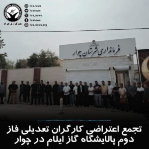 به گزارش خبرگزاری هرانا به نقل از ایلنا، امروز شنبه ۲۹ فروردین ۱۴۰۵، جمعی از کارگران بیکار‌شده پروژه ساخت فاز دوم پالایشگاه گاز ایلام در شهرستان چوار ابتدا در مقابل ساختمان اداره کار شهرستان ایلام تجمع اعتراضی برگزار کردند و سپس برای ادامه اعتراض خود به مقابل ساختمان فرمانداری چوار مراجعه کردند.