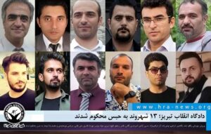 به گزارش خبرگزاری هرانا، ارگان خبری مجموعه فعالان حقوق بشر در ایران، ۱۳ شهروند در تبریز مجموعا به ۸۵ سال و ۹ ماه حبس محکوم شدند.