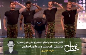 ماهنامه خط صلح – هر بار از سربازی اجباری میشنوم، صدای شهرام آذر، همان سندی خودمان، در گوشم میپیچد: «یغلوی به دست تو صف واسه ساچمهپلو…». چند سالی است که هشتگ از سربازی بگو در شبکههای اجتماعی دیده میشود. اما ترانهی سندی نه در سالهای اخیر و با شبکههای اجتماعی مدرن، که سال ۱۳۷۶ و روی نوار کاست دستبهدست میشد. آن سالها خبری از این همه فعال حقوق بشری و رسانههای رنگارنگ و جنگهای تبلیغاتی بر سر روایتها نبود. نوار بود که روی آن میشد موسیقی سنتی مجاز، آهنگهای قبل از انقلاب، نوحه و مداحی، آهنگ خارجی، تکوتوک پاپ نوپای بعد از انقلاب یا ترانههایی که به اسم لسآنجلسی میشناسیم، شنید. آن سالها، صدای سندی انگار پژواک رنج نسلهایی بود که حتی نُه سال بعد از پایان جنگ باید به سربازی میرفتند و عمرشان را هدر میدادند.