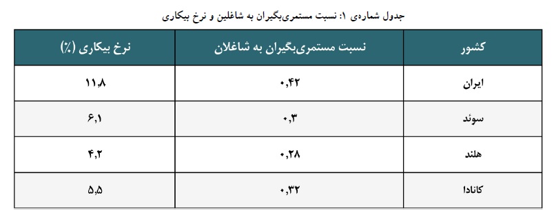 افزایش نسبت مستمری‌بگیران به شاغلان (۰.۴۲ در ایران در مقایسه با ۰.۳۰ در سوئد و ۰.۲۸ در هلند) و نرخ بیکاری بالا (۱۱.۸ درصد) فشار مضاعفی بر صندوق‌ها وارد کرده است. جدول زیر مقایسه‌ای بین ایران و کشورهای پیشرفته ارائه می‌دهد: