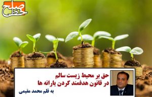 اما اجرای قانون هدفمند کردن یارانه ها بر تحقق حق محیط زیست سالم چه تاثیری گذاشت؟ اگر یارانه ها به سوی زیرساخت های زیست محیطی هدایت می شد، مصرف انرژی کاهش یافته و حق محیط زیست سالم نیز بهتر محقق می شود. یکی از مصداق های هدفمندی، هدایت یارانه ها به سوی زیرساخت های زیست محیطی است، اما هدفمند کردن یارانه ها در کشورمان به درستی قانون گذاری نشد و در واقع اعطای یارانه ها هیچگاه هدفمند نشد. از سوی دیگر، سهم بخش های زیست محیطی و اصلاح الگوی مصرف که در قانون هدفمند کردن یارانه ها پیش بینی شده بود، به طور کامل پرداخت نشده و در مواردی نیز که پرداخته شده، هدفمند(به سوی زیرساخت ها) نبوده است. برای نمونه، همچنان یارانه انرژی پرداخت می شود، در حالی که می بایست یارانه انرژی به سوی اصلاح فناوری کم مصرف انرژی هدفمند می شد. در واقع، این قانون، بیش از این که یارانه ها را هدفمند کند، به نقدی کردن یارانه ها منجر شده و به تبع آن، حق محیط زیست سالم به خوبی محقق نشده است. به نظر می رسد، برخی زیرساخت های اجرای این قانون مانند تامین منابع آن با چالش هایی روبرو است. برابر گزارش مورخ ۱۳۹۲/۴/۹ دیوان محاسبات، در اجرای این قانون تخلف شده و از منابع غیرمجاز استفاده شده است. چنان که کمتر از ۵۷ درصد کل منابع از محل افزایش قیمت حامل های انرژی تامین شده است و باقیمانده منابع تامین شده از محل بودجه عمومی دولت زیر عنوان یارانه ها، انتقال سهم مالیات بر ارزش افزوده، سهم شرکت ملی نفت ایران و استفاده از منابع خزانه داری کل کشور برخلاف حکم قانون بودجه سال ۹۰ بوده است. برای نمونه، برداشت مبلغ ۴۰ هزار میلیارد ریال از محل منابع عمومی خزانه داری کل کشور (زیر عنوان علی الحساب) را می توان نام برد.