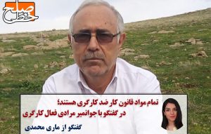 در این شماره خط صلح به سراغ آقای جوانمیر مرادی، فعال نام آشنای حوزهی کارگری و عضو انجمن صنفی کارگران برق و فلزکار کرمانشاه رفته و نظرات او را راجع به معضلات بازنشستگان جویا شده است. آقای مرادی زندانی سیاسی سالهای شصت و دو و شصت و سه در زندان کرمانشاه است. وی همچنین سال هشتاد و پنج به اتهام برگزاری مراسم روز جهانی کارگر در کرمانشاه بازداشت و سپس تبرئه شد. سال هشتاد و هفت نیز باز به اتهام برگزاری مراسم روز جهانی کارگر در عسلویه بازداشت و به مدت چهل و هفت روز در انفرادی اداره اطلاعات بوشهر و زندان بوشهر در بازداشت بوده و سپس به شش ماه حبس تعزیری محکوم و در نهایت این محکومیت به جریمه نقدی دو میلیون تومان تبدیل شد.